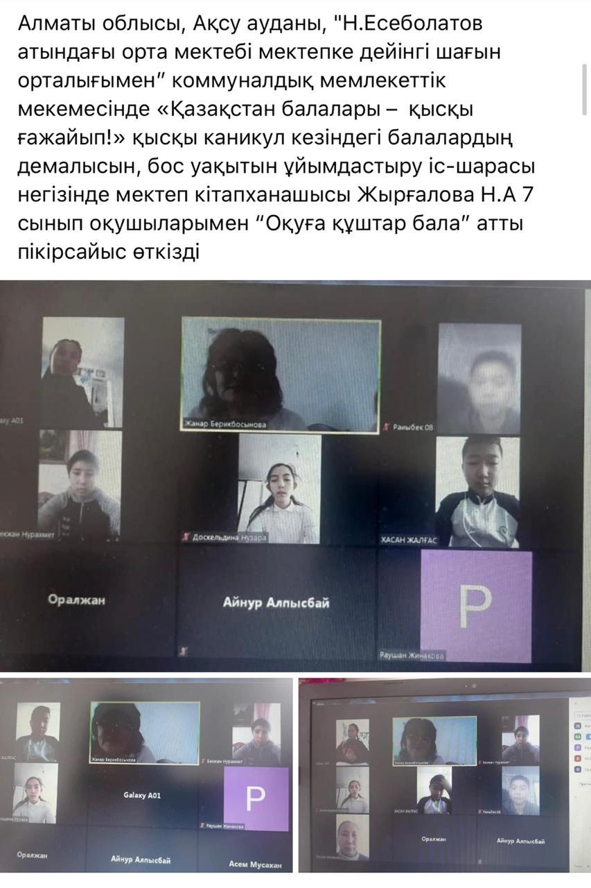Алматы облысы Ақсу ауданы Н.Есеболатов орта мектебінде “Қазақстан балалары-қысқы ғажайып!” Қысқы каникул кезіндегі балалардың демалысын, бос уақытын және жұмыспен қамтылуын ұйымдастыру іс-шарасы 30 желтоқсан мен 8 қаңтар аралығында өтілді